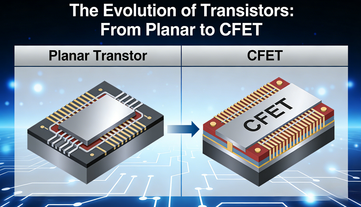 הטרנזיסטור עצמו עובר מהפכה אדריכלית שלמה.מ-MOSFET מישורי ל-FinFET, מננו-גיליון GAA ל-CFET, כל שלב מייצג מעבר מהתכווצות ל-CFET. בנייה מחדש של הטרנזיסטור בתלת מימד.זה לא רק שיפור מצטבר - זה הגדרה מחדש מלאה של האופן שבו שבבים מספקים ביצועים.